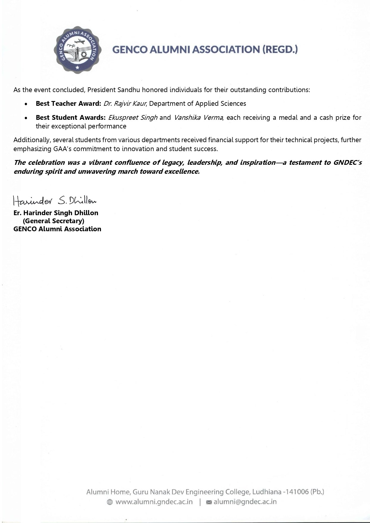 After scrutiny and withdrawal the final list of nominations for GENCO Alumni Association (Term-2024-26)