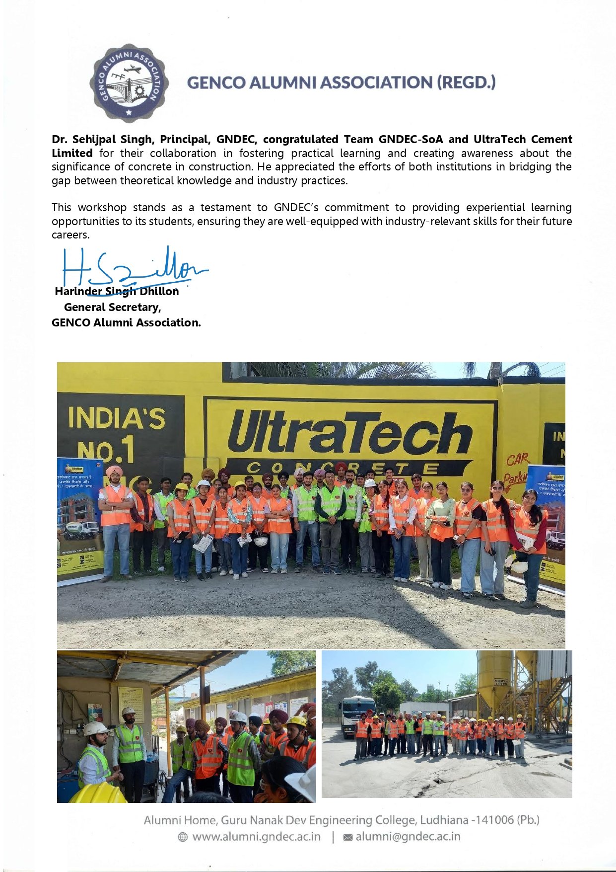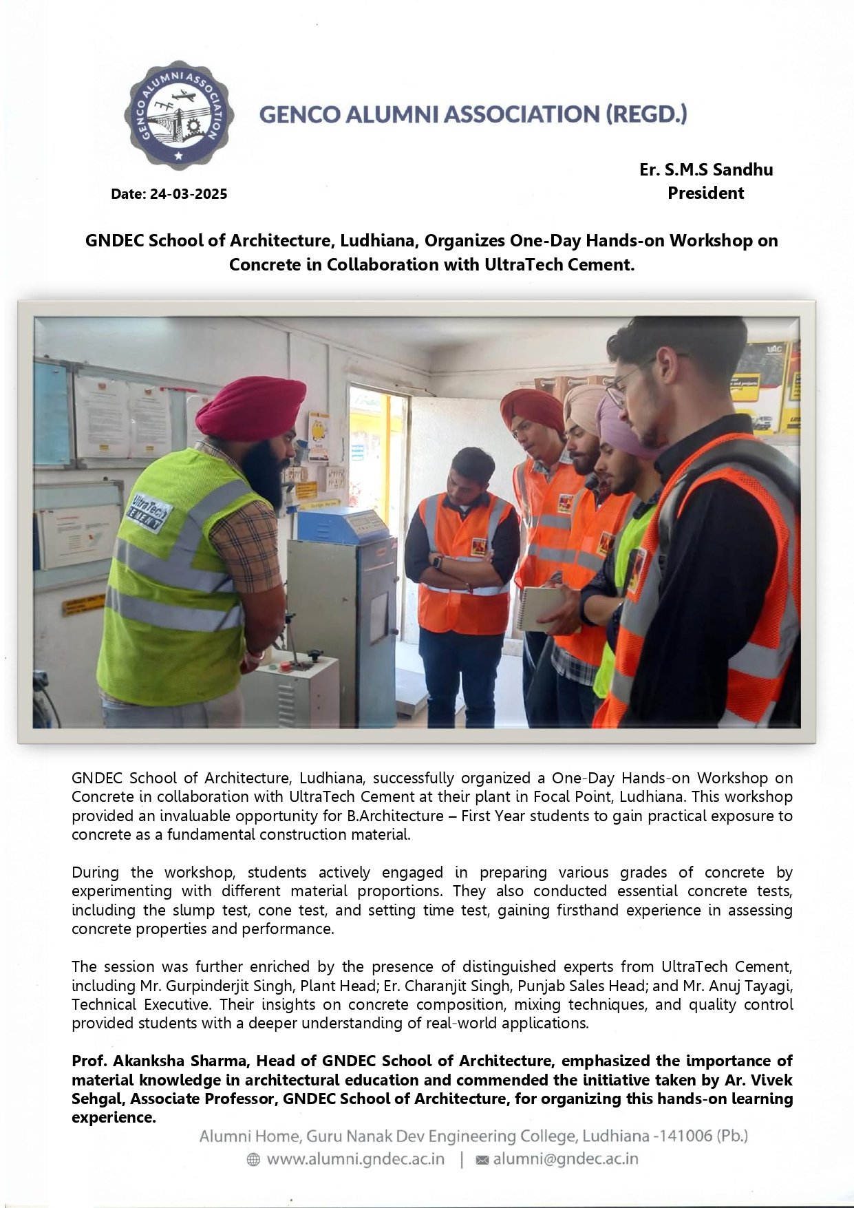 GNDEC Workshop on Concrete in Collaboration with UltraTech Cement.